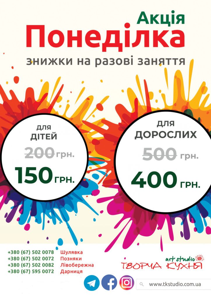 ?Арт-студія «Творча кухня» разом з ТЦ «Дитячий світ» запрошує всіх бажаючих поринути в світ ?живопису!