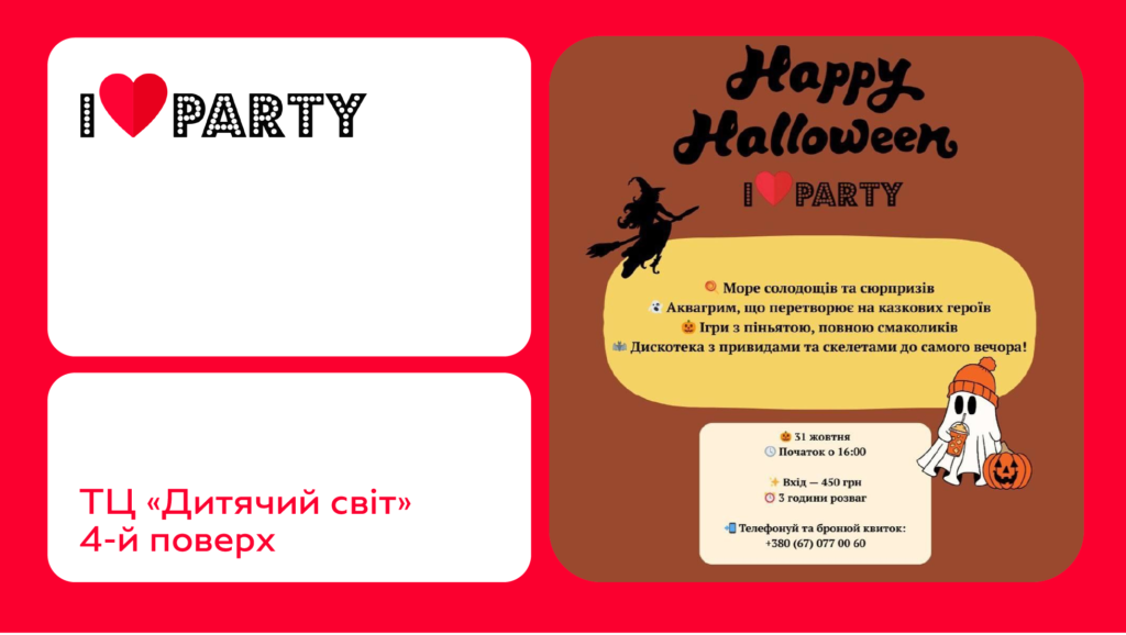 Чекаємо на тебе 31 жовтня о 16:00 в ТЦ «Дитячий світ» за адресою: